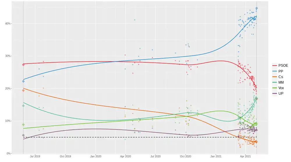 - "Los madrileños prefieren a Ayuso como presidenta antes que a Gabilondo". ElPlural.com (in Spanish). 28 April 2021.