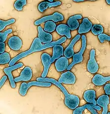 Marburg virus disease (MVD) is a highly virulent, epidemic-prone disease, associated with a high case-fatality ratio of 24-90%. In the early phase of the disease, it is hard to distinguish the disease from other diseases. There are no specific treatments or vaccine against the Marburg virus, though supportive care increases the likelihood of survival.[2] 14 outbreaks of the disease have been reported since 1967, when it was first detected, mostly in sub-Saharan Africa.[3][3]