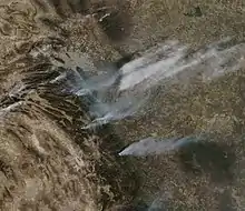 The Mexico wildfire season mostly starts from March and ends in May. But the 2021 wildfire season in Mexico is one of the worst fire seasons the country has faced in more than a decade, the major wildfires mostly being in Nuevo León. The wildfires in the state are mostly blamed for the ongoing drought in North America that is fueling hundreds of wildfires across the continent. A DC-10 Air Tanker was used to battle the wildfires in the Cumbres de Monterrey National Park.[4] Smoke from the wildfires affected the state's air quality. The smoke from the fires could also be visible from the U.S. state of Florida.[5]