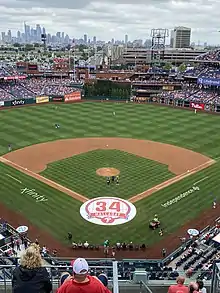 As COVID-19 restrictions in the city of Philadelphia began to abate, the Phillies announced on May 13 that the capacity limits at Citizens Bank Park would increase from 11,000 to 16,000 on May 21, and that the park would open to full capacity on June 12.[18] After the Philadelphia Department of Public Health announced that most COVID-19 restrictions would be lifted on June 2, the Phillies amended their earlier statement, and began allowing 100% capacity beginning on June 4. Additionally, tailgating in the parking lot was allowed to commence on June 4, and attendees were no longer required to wear face coverings in outdoor areas of the park.[19]