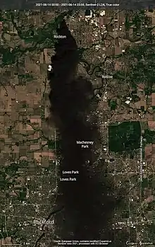 On June 14, 2021, a maintenance accident at the Chemtool Incorporated manufacturing plant in Rockton, Illinois, triggered a chemical fire that lasted four days and injured two emergency workers.[1][2] Portions of the village, located north of Rockford near the Illinois-Wisconsin state line, were subject to a mandatory evacuation as a result of the fire.[3] The fire was not contained until June 16, with the evacuations lasting until June 18.[4][5]