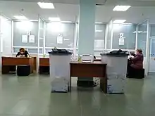 In the majoritarian part, candidates can be nominated both by political parties and in the order of self-nomination. The political party must provide a list of candidates to the CEC, and the list must contain the name and number of the constituencies in which each candidate would run. Documents of candidates-self-nominees, unlike candidates from political parties, have to submit applications to District Election Commissions.[89] For registration on the ballot list, the self-nominated candidate must collect at least 3% of the signatures of voters residing in the constituency, or at least 3,000 signatures if the constituency has less than 100,000 voters.[90]
