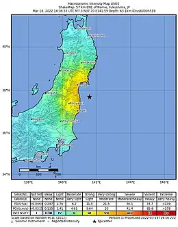 - "M 5.5 - 77 km SE of Ishinomaki, Japan". earthquake.usgs.gov. U.S. Geological Survey. Archived from the original on 17 March 2022. Retrieved 17 March 2022.