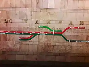 20 Yanvar (20 January in English) is a Baku Metro station. It was opened on 31 December 1985. It was formerly called XI Qızıl Ordu Meydanı.[1]