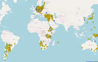 The roll film parts of the archive (up to 1960) have also been digitized. As neither the folders nor the documents on these films were separated in a machine-readable fashion, such formal elements could not be automatically derived. Instead, the pages had to be "sliced" with a specially developed "Slider" software, assembled into documents and folders, and given metadata.[31] Only a small part of this labor-intensive process was finished at the end of the project in 2007. It is continued until today, so that new folders are continually made available via the web application "Pressemappe 20. Jahrhundert", which was created within the framework of the project.[32] Of the c. 11,000 company folders on digitized roll film,[16] currently about 7,500 are accessible online.[33] For the topics and wares archives, the share of online folders still seems to be significantly lower.[34] The persons are alphabetically indexed by name, while the companies are accessible by name, geographically by their headquarters and via industry lists. The topics can be accessed via the topics hierarchy and country system as well as through a search for subject and geographical GND keywords and via a world map with geolocations.