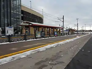 28th Avenue station is a light rail and bus station on the Blue Line[1] in the Twin Cities region of the U.S. state of Minnesota.[2] The station opened with the Blue Line light rail on December 4, 2004 and the Red Line began service at the station on June 22, 2013. It has a 1,443-space park and ride facility. The south parking lot was closed for construction of a 1,443 space parking ramp, which opened in Fall 2008.