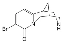 3-Bromocytisine is a derivative of the toxic alkaloid cytisine that acts as a highly potent agonist at neural nicotinic acetylcholine receptors, binding primarily to the α4β2 and α7 subtypes. 3-Bromocytisine is a full agonist at the α7 subtype while it is only a partial agonist at α4β2, but has an extremely strong binding affinity at α4β2 with 200-fold selectivity for α4β2 over α7. In animal studies 3-bromocytisine stimulates the release of dopamine and noradrenaline and increases locomotor activity.[1][2][3][4]