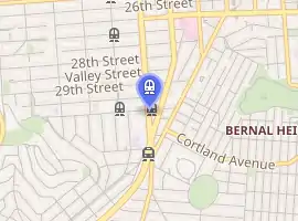 30th Street and Dolores is a light rail stop on the Muni Metro J Church line, located in the Bernal Heights neighborhood of San Francisco, California.