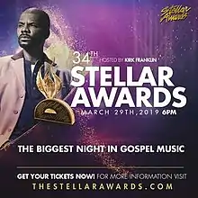 The 34th Annual Stellar Awards was held on March 29, 2019, at the Orleans Arena in Las Vegas,[1] and later aired for the first time on American digital cable and satellite television network BET on April 19.[2] Musician Kirk Franklin hosted the ceremony.