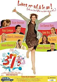 37 1/2 (Norwegian: 37 og et halvt) is a 2005 Norwegian comedy-drama film directed by Vibeke Idsøe, starring Helén Vikstvedt. Selma (Vikstvedt) is a journalist in her late 30s, having a mid-life crisis.[1]