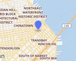 388 Market Street is a 24-story, 94 m (308 ft) mixed-use flatiron skyscraper, completed in 1987 on Market Street in the financial district of San Francisco, California. The building is clad in red granite. The top seven floors house luxury apartments, while the lower floors contain office space. It was designed by Skidmore, Owings & Merrill.