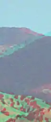 In the red-cyan anaglyph example to the right, a ten-meter baseline atop the roof ridge of a house was used to image the mountain. The two foothill ridges are about four miles (6.4 km) distant and are separated in depth from each other and the background. The baseline is still too short to resolve the depth of the two more distant major peaks from each other. Owing to various trees that appeared in only one of the images the final image had to be severely cropped at each side and the bottom.