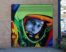 Today's style of 3Steps includes influences of street art, style writing, photorealism, printmaking and pop art.[10] In their current works 3Steps reflects today’s life, characterized by varying environments from reality, fiction, media and fantasy.[11] The imagery of 3Steps is telling short stories and modern fairy tales.[3] Most of the collective stories based on iconic figures and moments of daily life.[12] 3Steps turns everyday commodities and historic items into modern art. Nature faces urban culture and sunken cities.[13] The works are colorful imageries in which aesthetics and glamor melt with urban culture and adventure.[11]