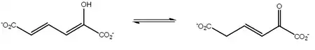 Reaction catalyzed by 4-oxalocrotonate tautomerase.[1]