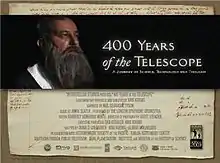 400 Years of the Telescope: A Journey of Science, Technology and Thought is a 2009 American documentary film that was created to coincide with the International Year of Astronomy in 2009. Directed by Kris Koenig, it chronicles the history of the telescope from the time of Galileo and features interviews with leading astrophysicists and cosmologists from around the world, who explain concepts ranging from Galileo's first use of the telescope to view the moons of Jupiter, to the latest discoveries in space, including new ideas about life on other planets and dark energy, a mysterious vacuum energy that is accelerating the expansion of the universe.