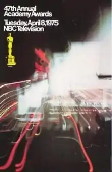 The 47th Academy Awards were presented Tuesday, April 8, 1975, at the Dorothy Chandler Pavilion in Los Angeles, California, honoring the best films of 1974. The ceremonies were presided over by Bob Hope, Shirley MacLaine, Sammy Davis Jr., and Frank Sinatra. This was the last year NBC aired the ceremonies before ABC secured broadcasting rights, which they still hold to this day.