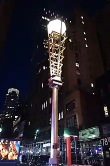 According to The New York Times, the Diamond District has maintained a thriving, bazaarlike marketplace since the 1920s.[9] Many deals are finalized by a simple, traditional blessing (mazel und brucha, which mean "luck and blessing" in Hebrew) and handshake.[6][12] Retailers with shops line the streets outside. At 50 West 47th Street is the Gemological Institute of America which trains gem dealers.[13] One distinguishing figure of the district is the diamond-motif street lights illuminating the corners.[14] The NYC Diamond District also holds three prominent trade interconnected buildings: the 580 Fifth Avenue Exchange, the DDC, Diamond Dealers Club, and the International Gem Tower. It is also close to other landmarks such as Rockefeller Center and Radio City Music Hall.[15]