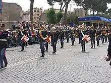 The XXVII Group "Genova", dismounted and located in Corsica, after having taken part in actions against the Germans and having been assigned to police duties, was returned to Italy and assigned to the Territorial Command of Bari in August 1944. In January 1945, the XXVII Group "Genova", within the Eighth Army, was part of the 56th Area Command of Siena. In May 1945 the Group took part in the occupation of Milan and was then incorporated into the 5th Regiment "Guardie" in Brescia.[12]