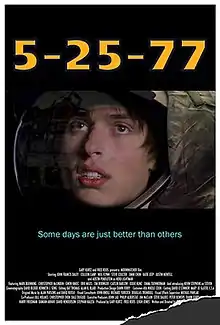 5-25-77 is a coming of age film written and directed by Patrick Read Johnson and produced by Fred Roos and Gary Kurtz. It stars John Francis Daley as a teenage filmmaker living in Wadsworth, Illinois, and his excitement for the premiere of Star Wars on May 25, 1977.[1] Johnson began funding the project in 2001 and filming took place from 2004 to 2006. Additional shots were filmed in 2015 and 2016, making the filming span a total of thirteen years.