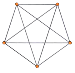 The regular complex polygon 2{4}5 has 10 vertices in with a real representation in matching the same vertex arrangement of the 5-5 duopyramid. It has 25 2-edges corresponding to the connecting edges of the 5-5 duopyramid, while the 10 edges connecting the two pentagons are not included. The vertices and edges makes a complete bipartite graph with each vertex from one pentagon is connected to every vertex on the other.[2]