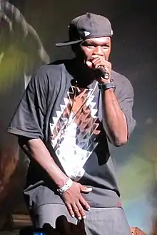 American rapper 50 Cent has released five studio albums, ten mixtapes, two video albums, four compilation albums, two soundtrack album, 76 singles (including 26 as a featured artist), and 88 music videos. As of July 2014, he is the sixth best-selling hip-hop artist of the Nielsen SoundScan era with 16,786,000 albums sold in the US.[1][2] 50 Cent signed to Shady Records in 2002 and released his debut studio album, Get Rich or Die Tryin', on February 6, 2003.[3] The album peaked at number one in the US Billboard 200 and performed well in international markets.[4][5][6] It features the number-one singles "In da Club" and "21 Questions"[7] and also includes the singles "P.I.M.P." and "If I Can't". 50 Cent collaborated with American rapper Lil' Kim on "Magic Stick", which peaked at number two in the US.