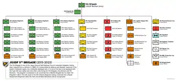 The 5th Brigade (Japanese: 第5旅団) is one of eight active brigades of the Japan Ground Self-Defense Force. The brigade is subordinated to the Northern Army and is headquartered in Obihiro, Hokkaidō. Its responsibility is the defense of North Eastern Hokkaidō.