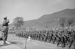 ![]() 5th Infantry Brigade on parade in Italy, 8 May 1944 | |