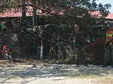 Soldiers in front of the Papare military base on guard duty