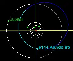 The orbit of 6144 Kondojiro is unusual for a number of reasons, including: