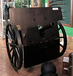 A 6 cm L/21 in firing position with ammunition boxes dismounted.