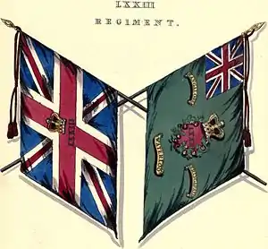 The regiment was raised as the 2nd Battalion, 42nd (Royal Highland) Regiment of Foot in March 1780,[1][2] with eight officers from the 1st Battalion being detached to help raise the new battalion. The battalion was sent to India in January 1781 and took part in the siege of Mangalore in autumn 1783 during the Second Anglo-Mysore War.[3] It was still in India when the battalion received regimental status in 1786 as the 73rd (Highland) Regiment of Foot.[4] The new regiment remained in India and saw action at the siege of Seringapatam in 1792 during the Third Anglo-Mysore War,[5] the siege of Pondicherry in August 1793 during the French Revolutionary Wars and the capture of the Dutch settlements in Ceylon in 1795.[6] It went on to form part of the storming party at the siege of Seringapatam in April 1799 during the Fourth Anglo-Mysore War[7] before returning to England in July 1806.[8]