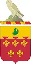 - Crest: The crest is taken from the arms of Montfaucon, as most of the 77th Field Artillery was there when the Armistice was signed.