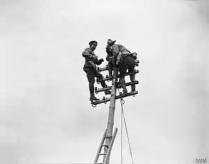 After the evacuation, I Corps was reassembled in Northern Command, becoming responsible for both field forces and coast defence artillery on the Yorkshire and Lincolnshire coast.[2][7][21] In 1941 corps signal units were reorganised so that 1 Company supported Main HQ and 2 Company supported Rear HQ.[14] In April 1942 a large part of I Corps Signals was used to reform No 1 Line of Communication Signals (later sent to North Africa in Operation Torch).[2][7][22]