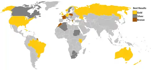 The United States is the most successful nation, having won nine gold medals & a total of 24 medals followed by Great Britain with eight gold & 12 medals overall and Kenya with six gold among its 15 medals.[4]