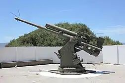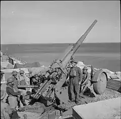 On the outbreak of war in September 1939 there had only been two batteries (9 and 19 AA Btys) manning the totally inadequate AA defences of Gibraltar, which consisted of four old 3-inch guns and four new 3.7-inch guns, spread in two-gun sections to give the widest possible coverage, and two of the new Bofors 40 mm guns to protect the Royal Navy Dockyard, with the assistance of Royal Navy (RN) 2-pounder pom-pom guns. 10th AA Rgt was formed in December 1939 to command 9 and 19 AA Btys and train the AA Section of the new Gibraltar Defence Force (GDF), which took over the 3-inch guns. Apart from occasional shots fired at unidentified aircraft penetrating Gibraltar's airspace, there were no attacks on the fortress during the 'Phoney war' period.[21][22][23][24]