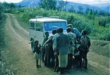 Postings for single and married male soldiers with families were normally for one and two years respectively. For most wives and families, life there especially in the very tropical and small town Popondetta was something which they had never experienced before and pre-arrival information did not quite cover reality. There were few of the conveniences and supports of home, but partners formed their own groups and integrated with the community which was essential during the long and frequent absences of their surveyor soldiers.[5]