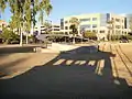 The 9/11 Memorial in Arizona is a state memorial to the events and aftermath of the September 11 attacks, located at the Wesley Bolin Memorial Plaza near the State Capitol in Phoenix, Arizona. The monument is a circular plan with a flat inclined metal ring. The ring was inscribed with written statements by cutting each letter through the metal, thus allowing sunlight to project the statements onto the concrete base of the monument.