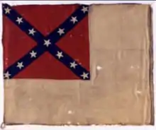 The Old State House Museum at Little Rock also contains a flag formerly attributed to the 9th Arkansas Infantry Regiment. A variation of the first national flag with twelve stars, nine describing a circle and three within it. More recent research now indicates that this flag most likely belonged to the 11th Arkansas Infantry Regiment and was found, along with the regiment's baggage in Fort Thompson after the unit evacuated Island No. 10. The 11th Arkansas Infantry Regiment flag was returned to by the State of Michigan in 1941. It's a first Confederate national flag pattern variation made of cotton and cotton damask, measuring 46" x 69" and is currently in the possession of the Old State House.[17]