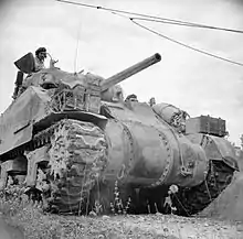 The Brigade was nominally independent, but was placed under command of the 2nd New Zealand Division specifically for the El Alamein battle. Following permission given by the New Zealanders, they proudly painted the Kiwis' divisional sign on their tanks.[1] The NZ infantry gained their objectives, but as with Operation Lightfoot on the first day of the battle, lanes could not be cleared through the minefields until night was almost over. 9th Armoured Brigade was forced to make its attack silhouetted by the early daylight. As dawn came on 2 November, tank after tank was hit by the German 88 mm guns that kept firing through seven air attacks. The 9th never reached their objective. In fact, they took 75 percent casualties and lost 102 of their 128 tanks. Nevertheless, they breached the gun line and the 1st Armoured Division of X Corps, under the command of Raymond Briggs, was now able to engage.
