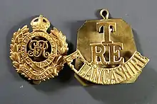 ![]() RE cap badge and TF East Lancs RE shoulder title | |