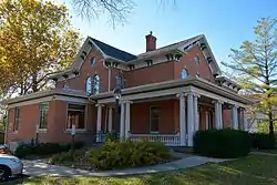 The A.W. Pratt House, also known as the Pratt-Soper House, is a historic building located in Iowa City, Iowa, United States. The S.W. and Fanny Pratt family was among the first settlers in Johnson County.[2] Albert W. Pratt, who had this house built in 1885, was one of their seven children. At the time it was built, this area was outside of the city limits. The two-story brick structure features around arch windows with keystones, double brackets under the eaves, and a broad cornice. The wrap-around porch is believed to have been built around the turn of the 20th century, replacing the original.[2] Walter I. Pratt built an addition onto the house for his Kimball pipe organ. That space was converted into bedrooms and a bath around 1966. The house was individually listed on the National Register of Historic Places in 1983.[1] In 2004 it was included as a contributing property in the Melrose Historic District.[3]