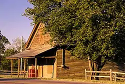 The 130 acre plot of land (that later housed the A. D. Strickland Store) was first owned by Edward F. Dawn starting in 1869.[3] The A. D. Strickland Store was constructed around 1878.[3] The store is a one-story, wood-framed, building and it features a gable-front, a tin roof, a fireplace with chimney, and gable returns on the front and rear facades.[3] By 1870, D.L. King owned the property and at that time it was called, "Dawn's Place".[3] There was a fire in c. 1890, the structure was damaged.[3]