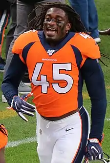 Johnson recorded five total tackles in a Week 14 road contest against the Houston Texans and former Gainesville High teammate Deshaun Watson.[3][22] The linebacker also forced a Keke Coutee fumble that teammate Kareem Jackson returned for a 70-yard touchdown en route to a 38-24 Broncos victory.[22][23]
