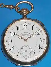 After finishing his apprenticeship with honours in 1835, Ferdinand A. Lange worked for Gutkaes for more than two years. In 1837 Lange embarked on his journeyman years, which took him to France, England and Switzerland. In Paris, he spent four years working as workshop manager of Austrian watchmaker Joseph Thaddäus Winnerl (inventor of the split-seconds chronograph).[19] The lectures given by the physician and director of the Paris Observatory Dominique François Arago extended his knowledge of astronomy. After France, he went to Switzerland and Great Britain to improve his knowledge and skills even further with well-known watchmakers.[20] However, Lange's intention was to set up a watchmaking industry in Saxony. He returned to Dresden in 1841 and became partners with his master's business.[21]