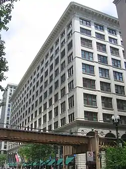 The A. M. Rothschild & Company Store, also known as the Goldblatt's Building, is a historic department store building located at 333 South State Street in the Loop neighborhood of Chicago, Illinois. The store was built in 1912 for the Rothschild & Company department store, which was founded in the late 1800s by Abram M. Rothschild. Prominent Chicago School architects Holabird & Roche designed the store; while the firm had also designed the company's previous, smaller store, the 1912 building was their first and only full-block department store design. The building's skeletal frame and large windows are typical of Chicago School buildings, while its extensive terra cotta ornamentation reflects the then-popular Beaux-Arts style. Rothschild & Company occupied the building until 1923, when Marshall Field & Company purchased it; it was sold again in 1936 to Goldblatt's, who ran their flagship store in the building until 1981.[2] The building is now owned by DePaul University and is primarily used for classrooms, though the building also contains the university's downtown library, cafeteria, and student union. A Barnes & Noble store utilizes most of the first level retail space.