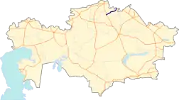 The A13 (before 2011 also known as P393) is a national highway in the northern part of Kazakhstan, that connects Kokshetau with Kazakhstan's border with Russia.[1] After crossing the border with Russia, the highway continues to Omsk as P393. The highway is around 278 kilometres (173 mi) long.