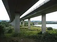 Sections of the A21 were upgraded to a dual carriageway standard in stages in the 20th century. The Sevenoaks Bypass opened in 1966, followed by the Tonbridge bypass and associated Medway Valley viaduct in July 1971.[7] The Pembury bypass opened in 1988,[8] followed by the Robertsbridge bypass in 1989.