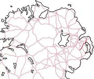 The A21, also Comber road,[1] is a road in County Down in Northern Ireland. The route commences in Bangor, passing through Newtownards, Comber, and Ballygowan, and finishes on the northern outskirts of Ballynahinch.