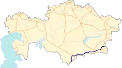 A2 is a national highway in Kazakhstan that runs from the border of Uzbekistan to the selo of Horgos with a total length of 1,292 kilometres (803 mi).[1] It is part of the European route E40 and Asian Highway 5.