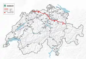 Location of the A3 within Switzerland